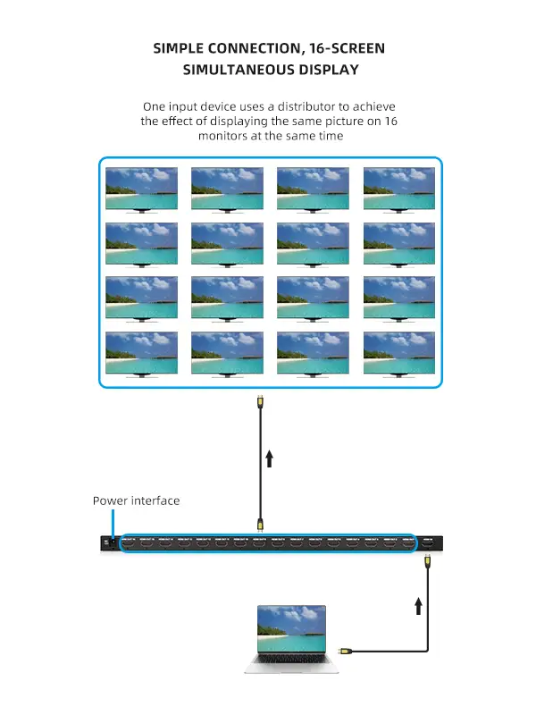 * Widely Usage: 16 Ports HDMI splitter is a great solution for different places like sport game watching, trade show, multimedia teaching, TV store, etc.