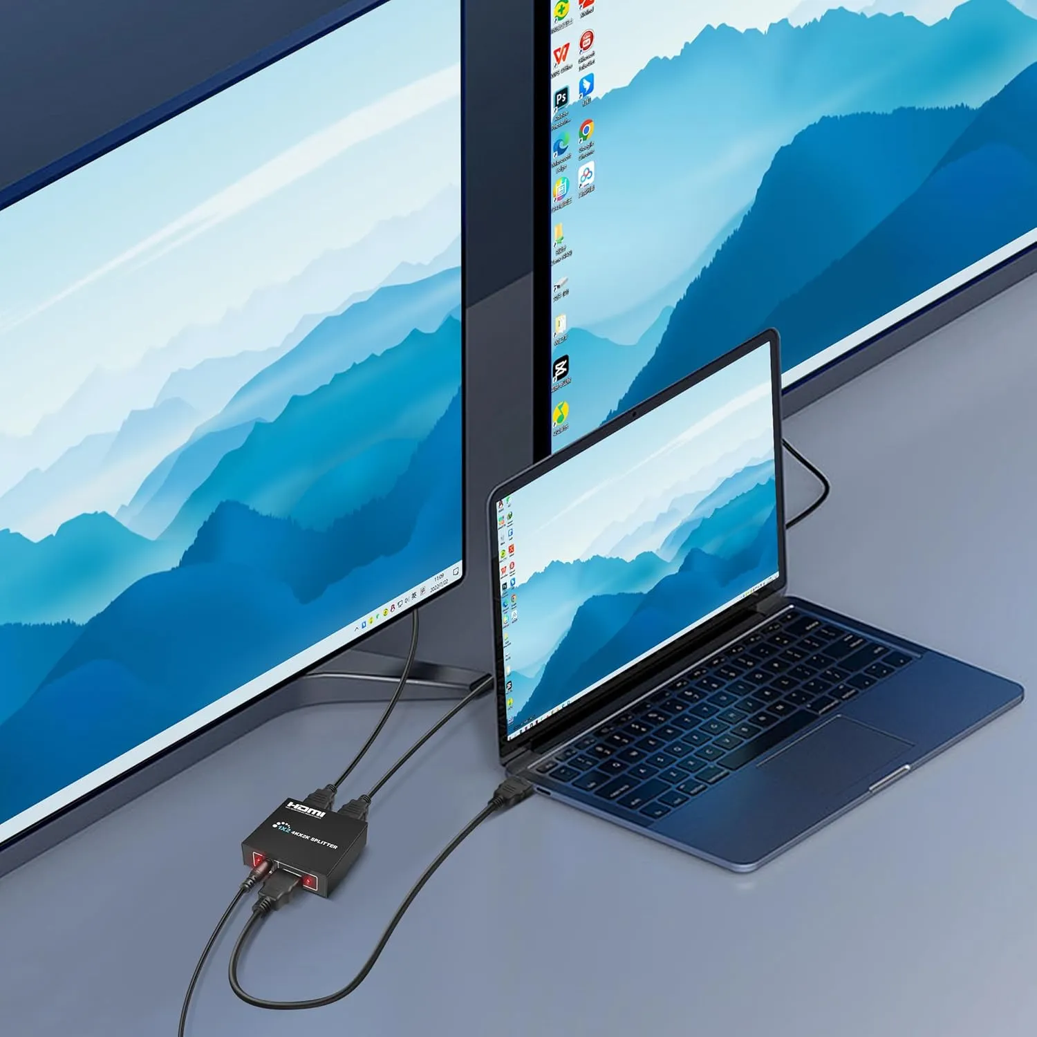 ⚡️ HDMI DUPLICATOR 1 x 2 - Duplicates Mirror Displays to 2 TVs, NOT FOR LAPTOPS OR PC TO EXTEND MULTI MONITORS. ONLY Split one HDMI input signal to two HDMI output signals identical to the input signal.Supported resolution: up to 4K/30Hz, 1080p, 720p, VGA to WUXGA.