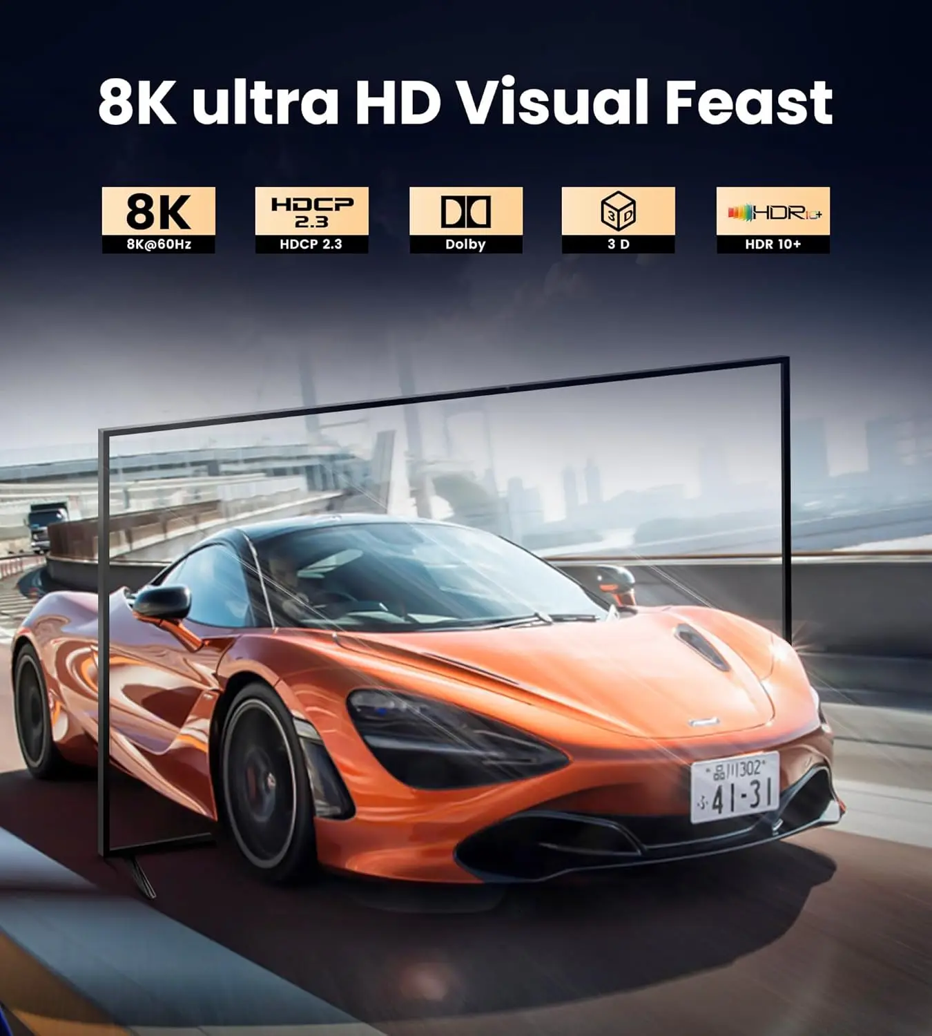 * [Durable aluminum alloy housing material] The 4K HDMI Splitter is made of the latest HDMI 2.1 chip with durable aluminum alloy material, easy to dissipate heat and ensure stable signal transmission, and the transmission rate of each port is up to 48Gbps, which ensures high-quality transmission of pictures and sound quality. Audio format support Doby HD, DTS HD, Doby Atoms, Doby AC3, DTS, LPCM etc.