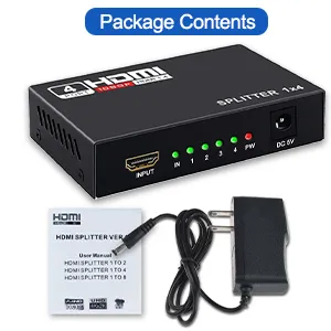 【Package Include】 1 x HDMI splitter, 1 x 5V/1A power adapter, 1 x user manual.Can be widely use in trade show, conference room, education and training, home theater and multimedia teaching.