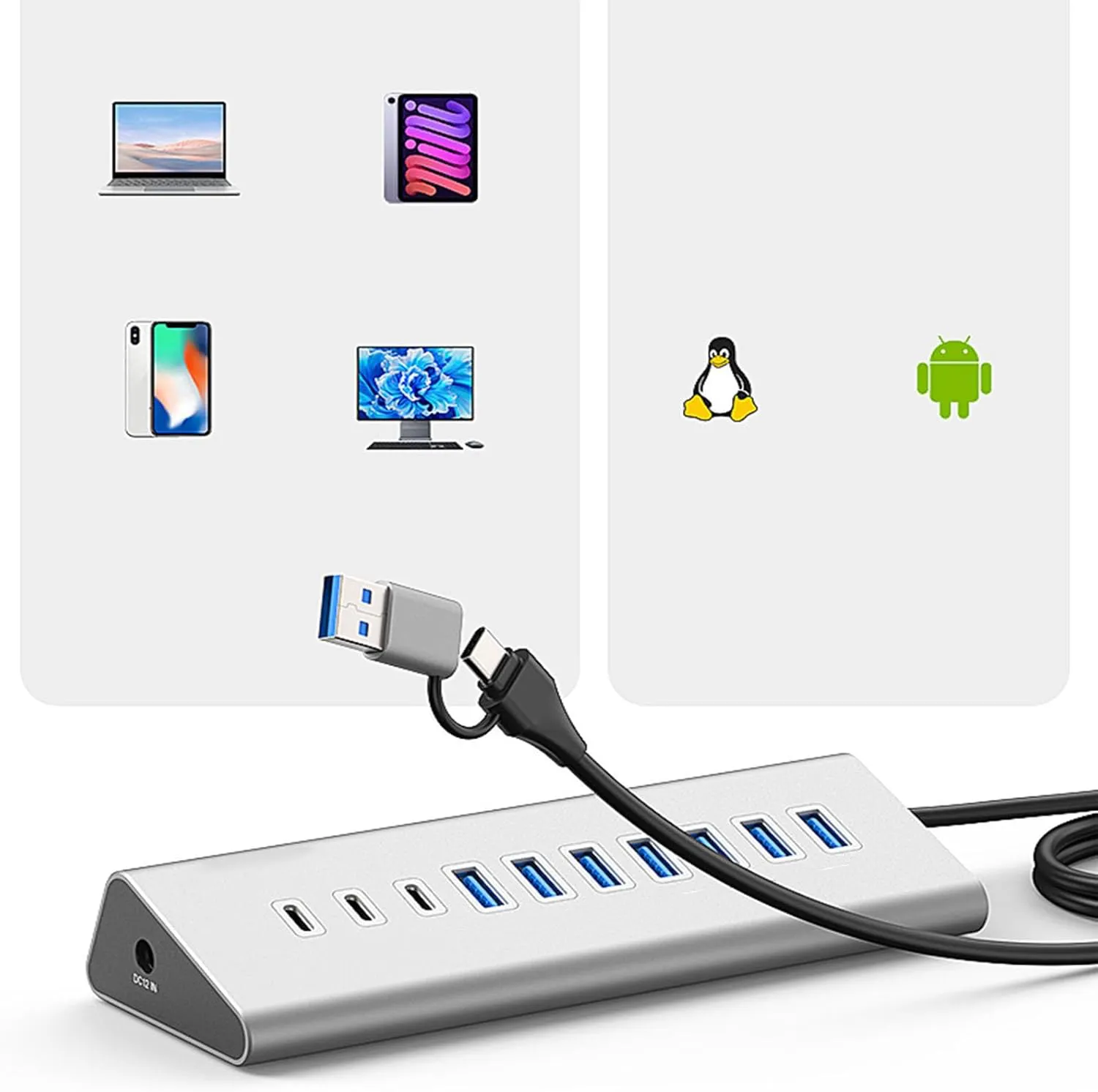10-Port Expansion: Supports high-speed data transmission for multiple devices simultaneously.