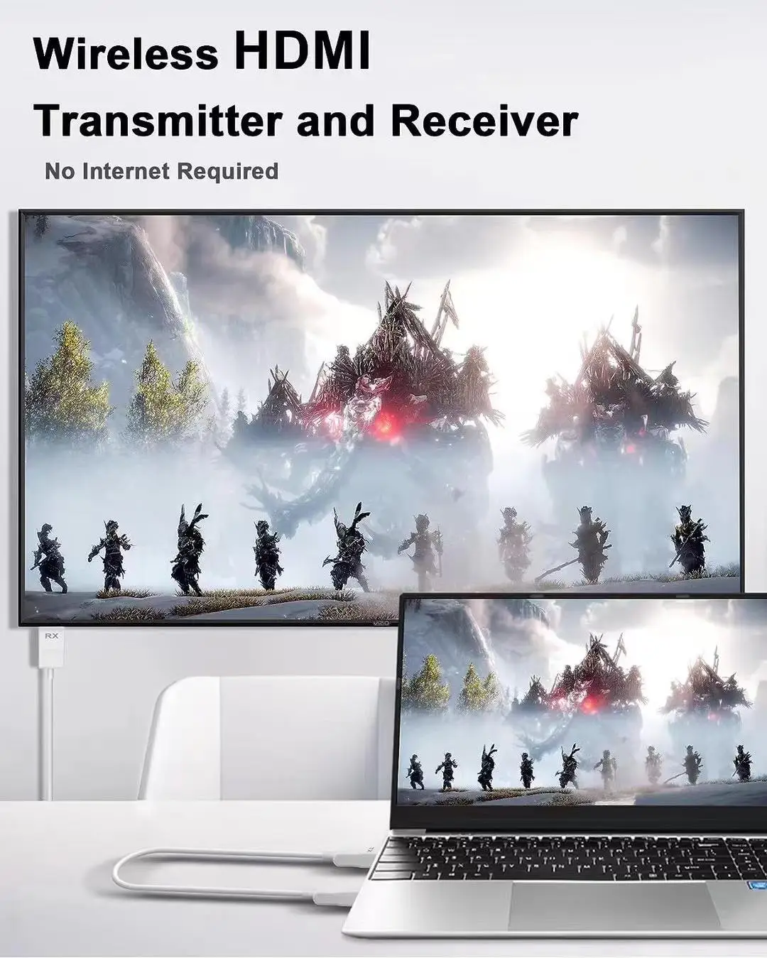 ⚡️ 【Wireless HDMI extender transmits HD video and audio from laptop, computer, camera, TV box to monitor, HDTV, projector】 * This wireless HDMI transmitter and receiver is suitable for office meetings, home theater, video teaching and business travel. Plug and play! Automatic recognition, automatic connection, automatic pairing.No drivers, no APP, no Bluetooth, no WiFi required.