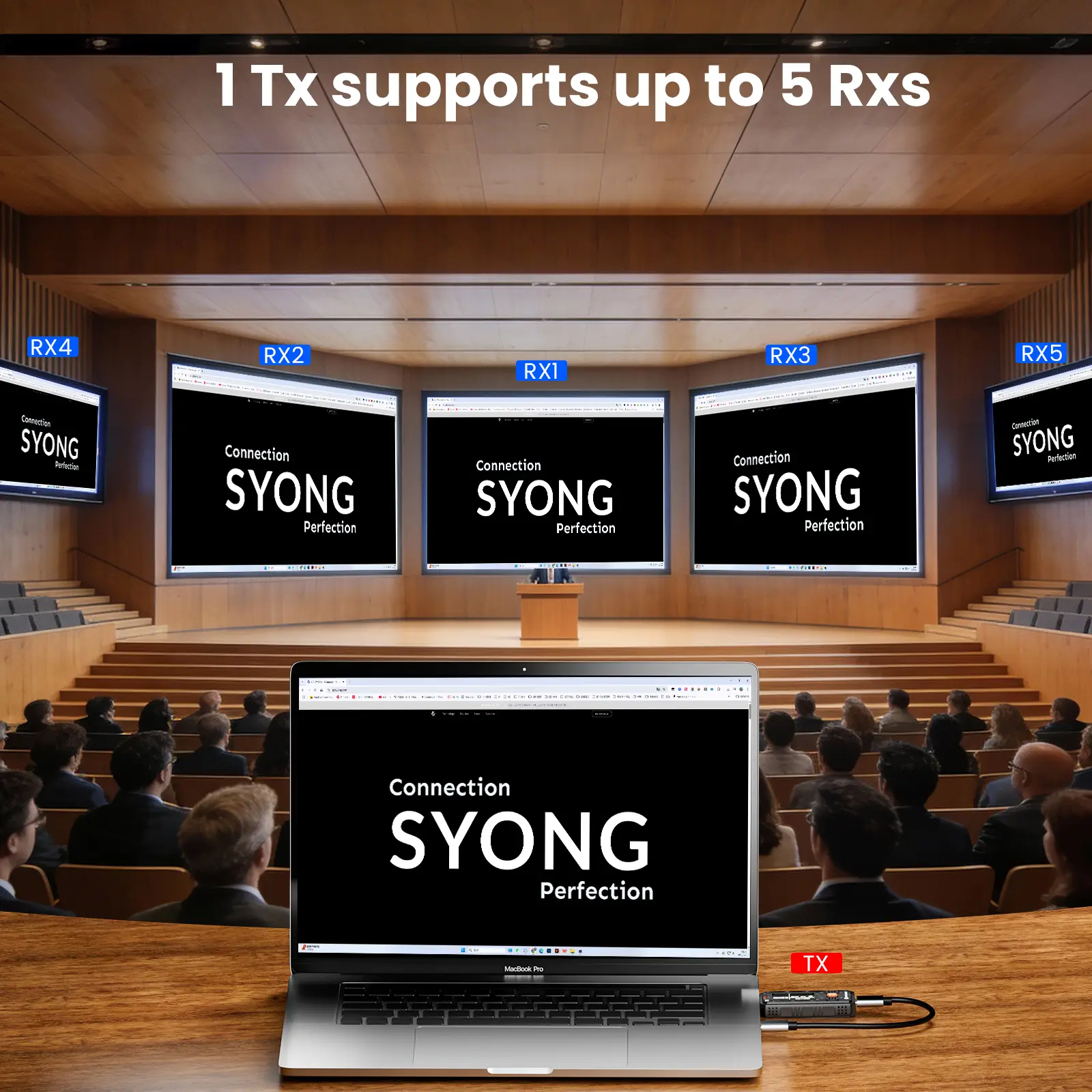 1TX to 4RX Supported: Up to 5 receivers per transmitter; more RX = shorter transmission distance.