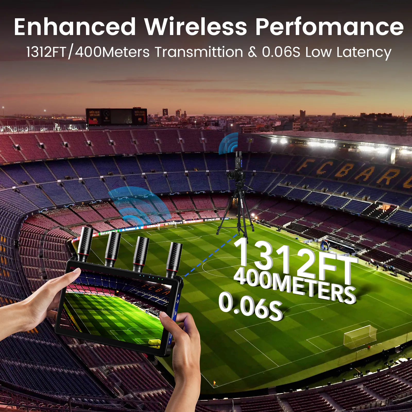 With high-gain dual antennas, the transmission distance can reach up to 1312FT/400Meters.