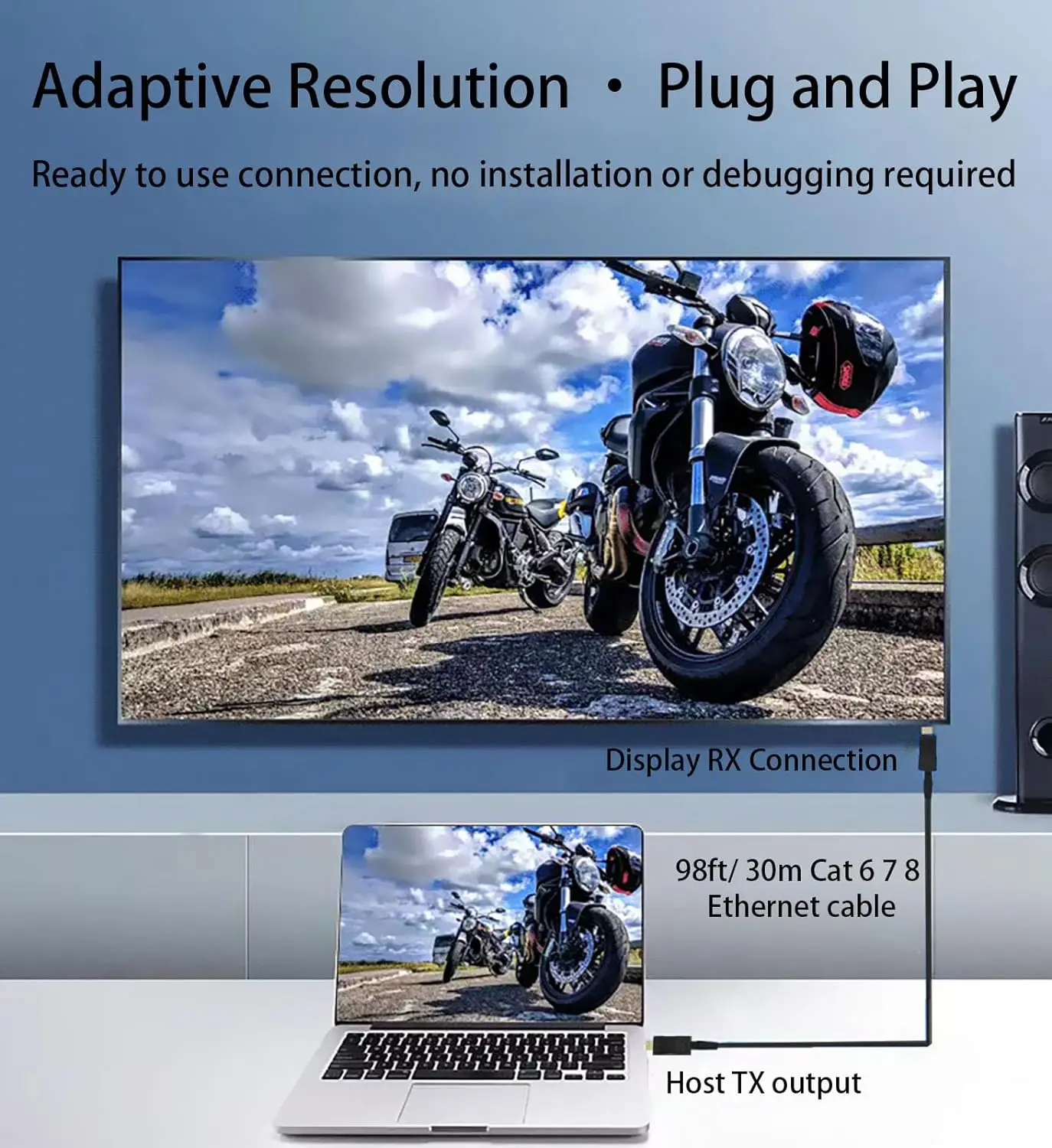 *【High Efficient Transmission】The ethernet to hdmi adapter for tv can extend HDMI video and audio signals simultaneously up to 30 meters/100ft by the CAT-5e/6 cables.