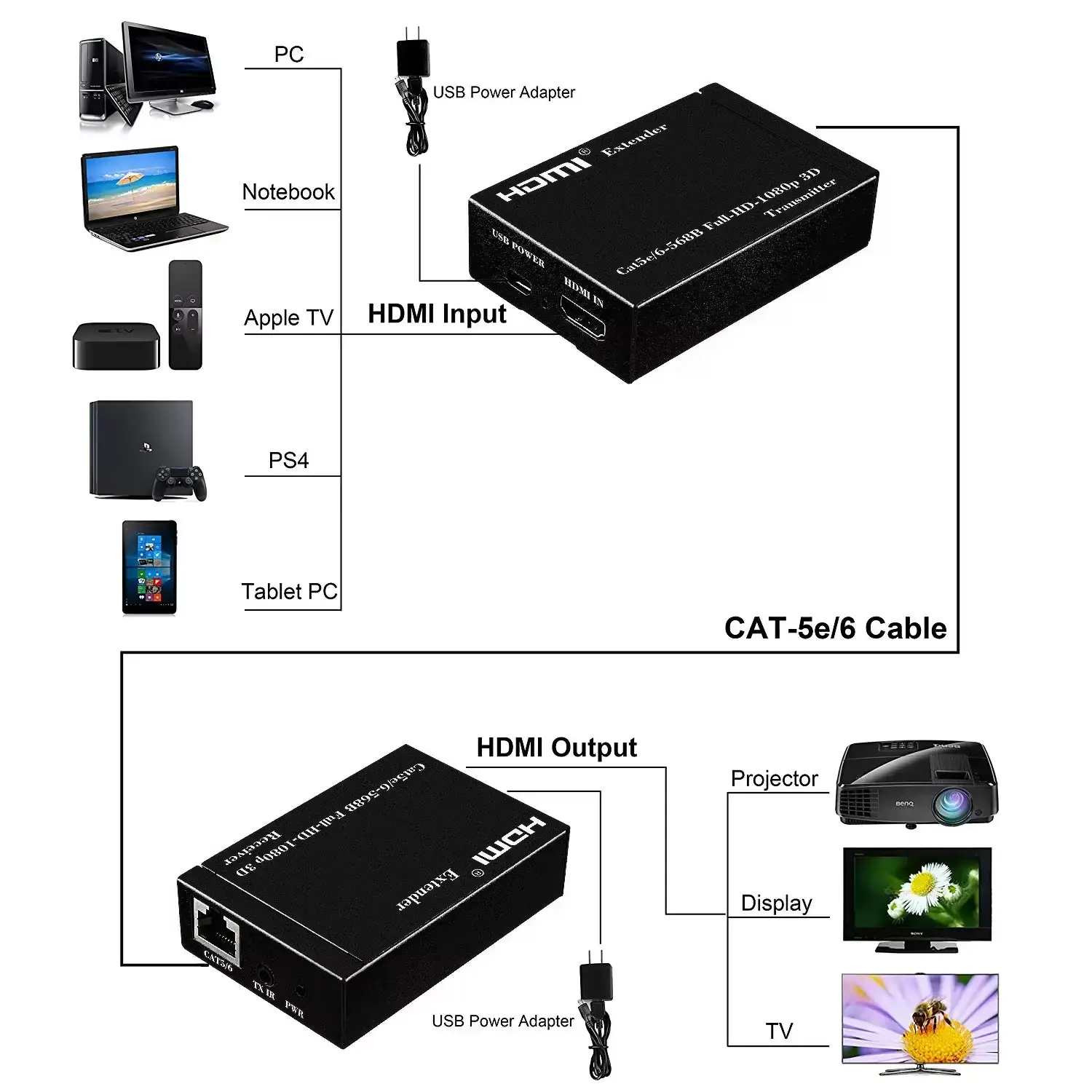 *【POC】In HDMI to HDMI extender, POC (Power Over Cable) technology streamlines setup by removing the need for extra power adapters. Power seamlessly flows through the CAT6 cable, ensuring hassle-free installation. Simply connect the power adapter at the transmitter (TX) end, and the receiver (RX) effortlessly receives power via the CAT6 cable.🔥Tips: Only ONE power adapter is needed at either the TX or RX side—No need for both.