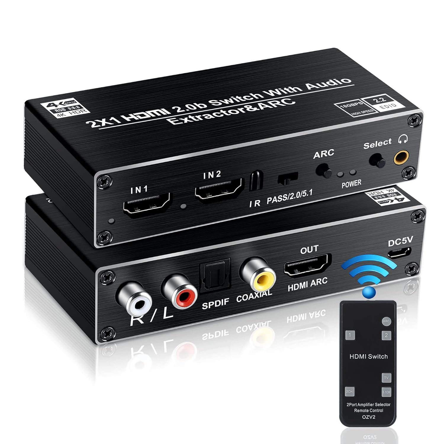 * 4K@60HZ 2X1 HDMI SWITCH with AUDIO EXTRACTOR\uD83D\uDD0A: This 4K HDMI Switch allows you connect Two HDMI 2.0 Sources to one display device, Each input source support audio extract by the Toslink+L/R+Coaxial audio output channel. No loss of quality after you split the signal. No degradation in audio quality.
