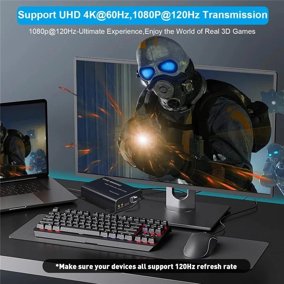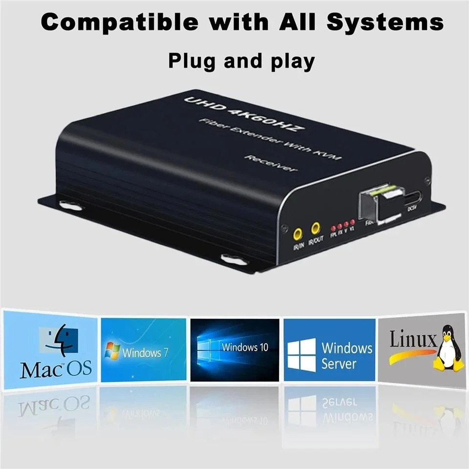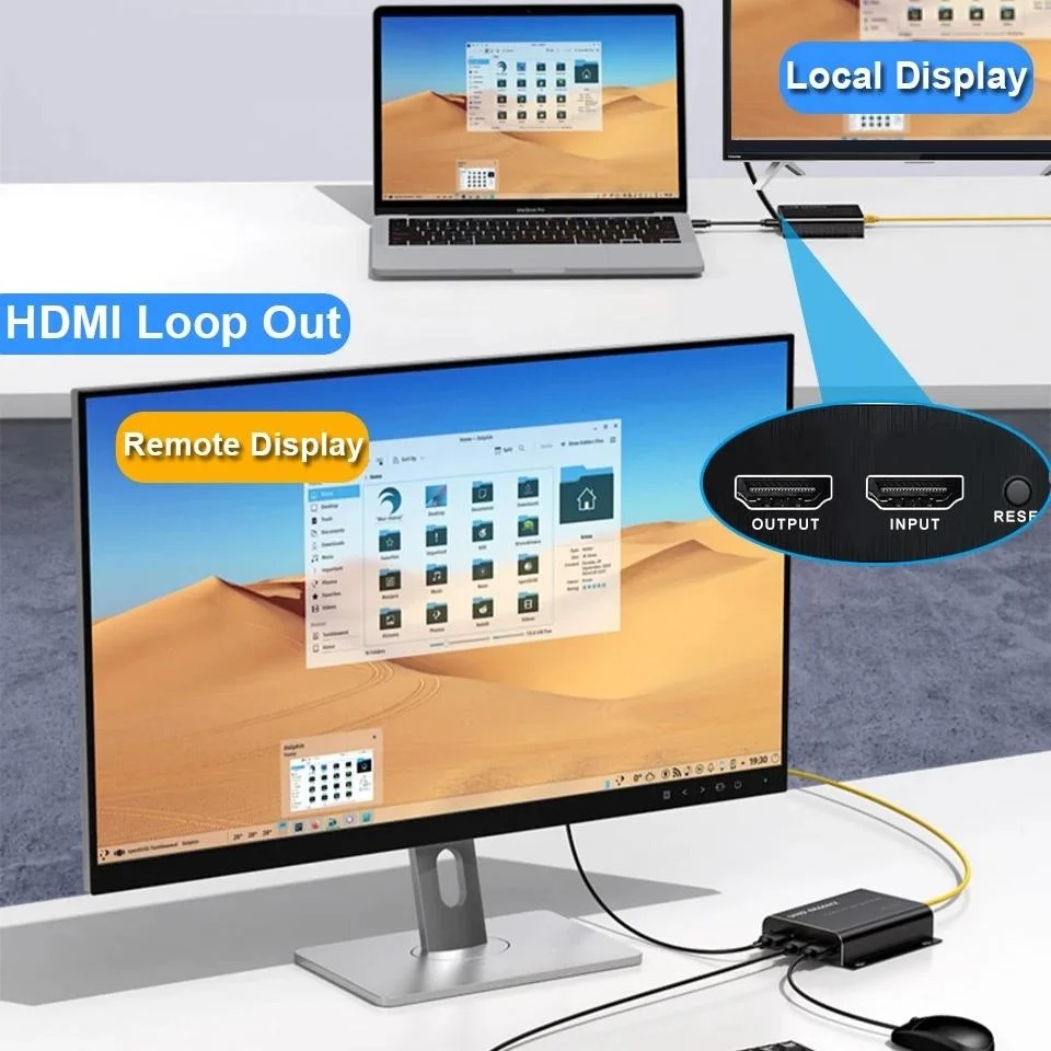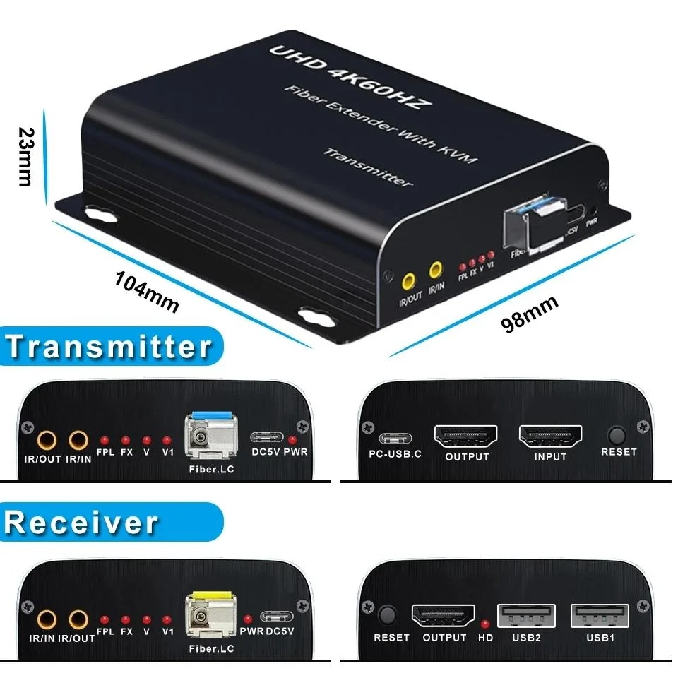 HDMI Fiber optic extender provides extension of HDMI video audio signal long distances over one LC fiber optic cable, it support high resolution up to 3840x2160@60Hz,1080P@120Hz . It also supports Remote KVM Control,Bi-directional IR control and HDMI loop out function.