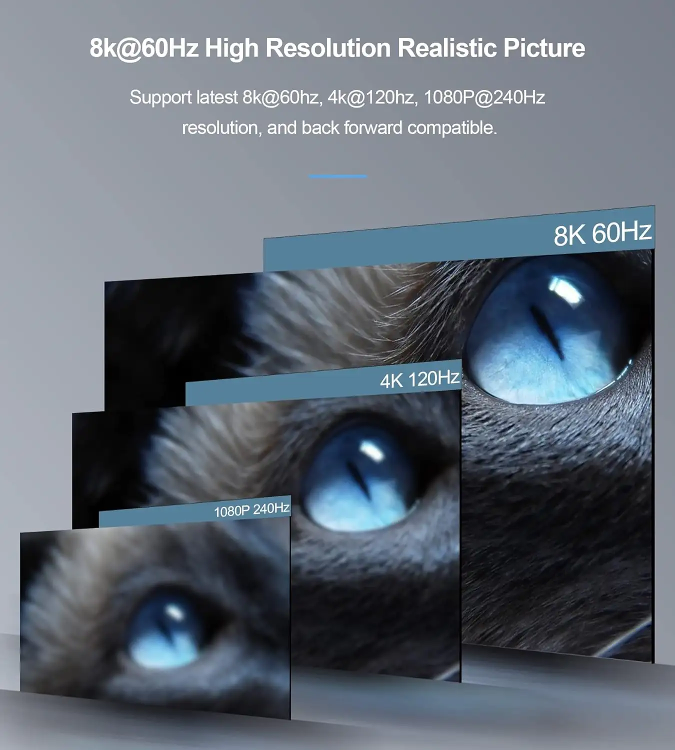 - Support HDMI resolution: Support 8K@60Hz, 4K@165Hz/144Hz/120Hz, 2K@240Hz, 1080P@240Hz.