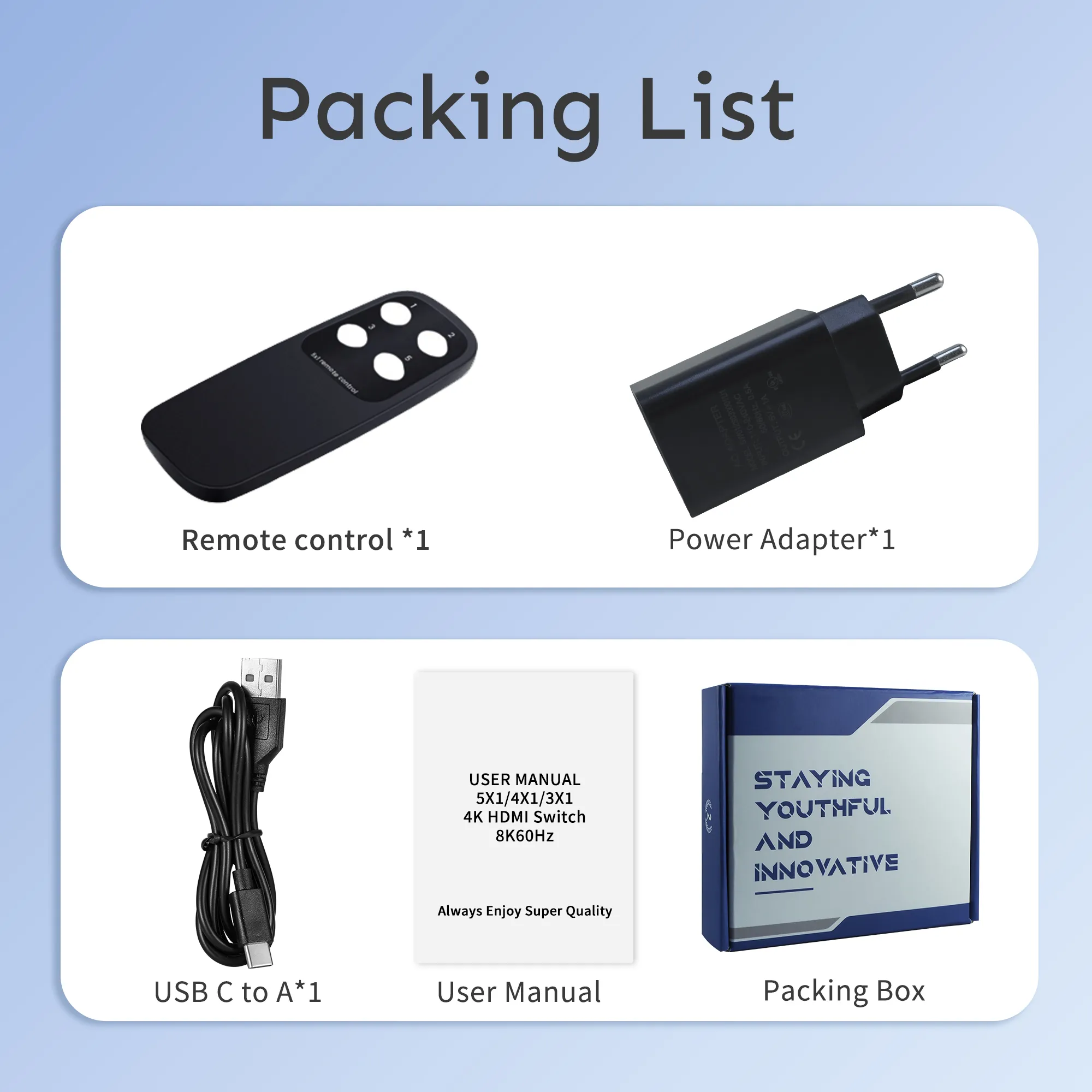 4 in 1 out 4k Ultra-thin HDMI switch with remote control, HDMI 2.0 and HDCP2.2, Dobly, HDR10+, 3D, 4K60HZ, Plastic shell