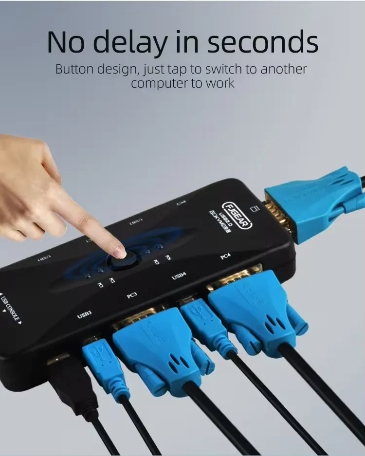 2 Switching Methods: Comes with wired desktop controller, you can use it to switch devices without leaving your seat. Or you can switch devices through the panel button. And the LED indicator can indicate which computer you are controlling