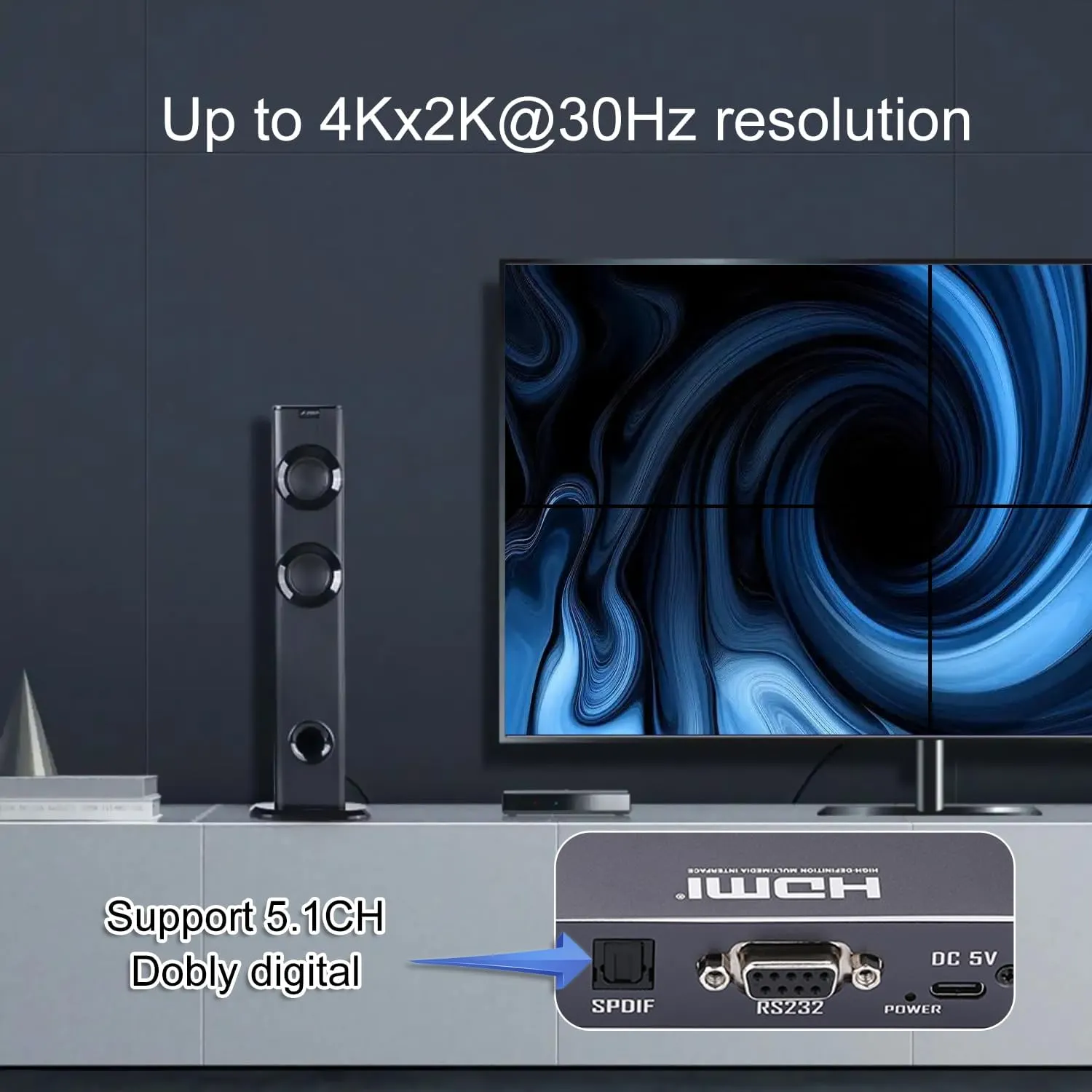 4K@30Hz HD Display: Supports 3840x2160P 30Hz、1920x1080P 25/ 30/ 50/ 60Hz and below input. Support 1920 x 1080P@60Hz and 4K@30Hz HD resolution output. Supports PCM audio output over optical fibers.