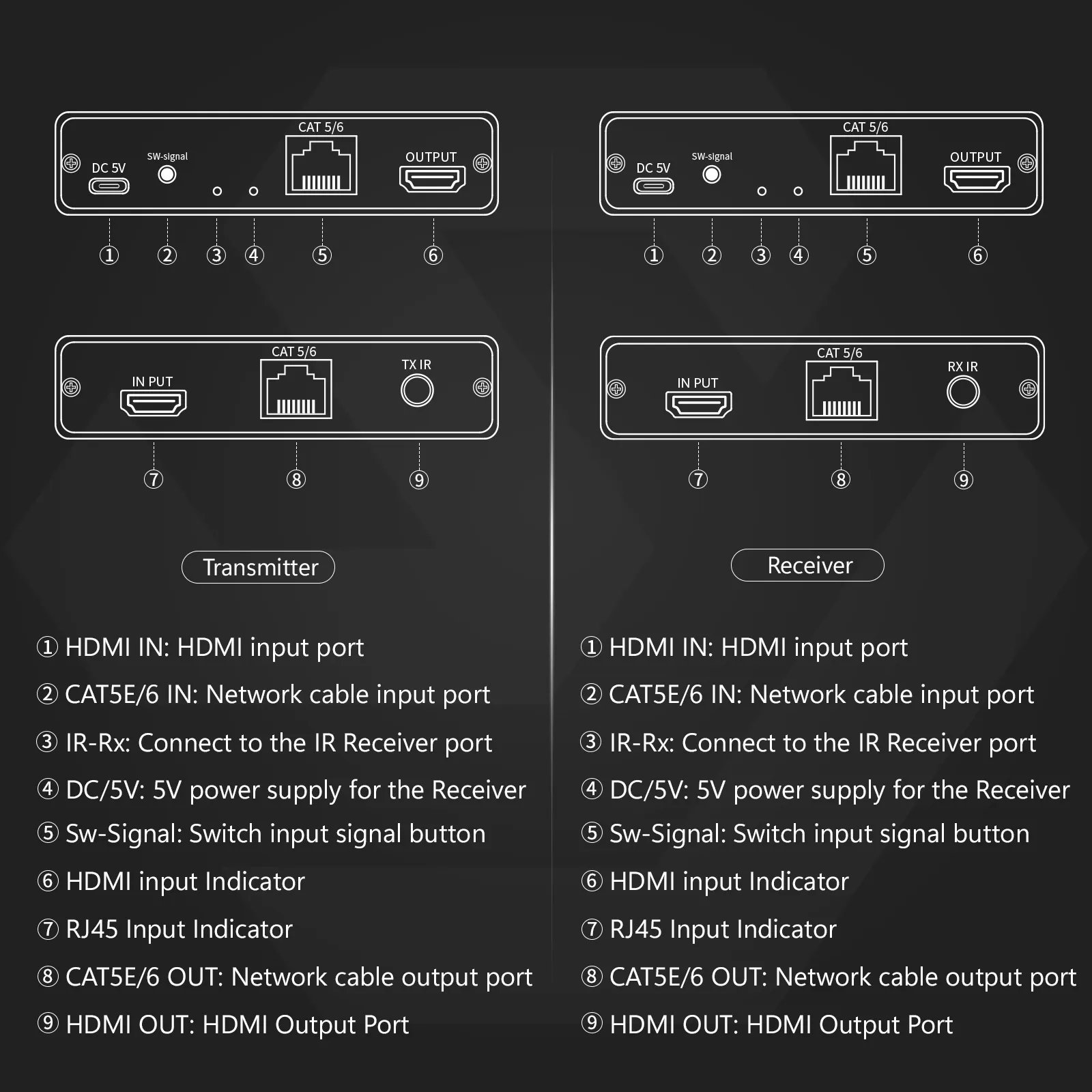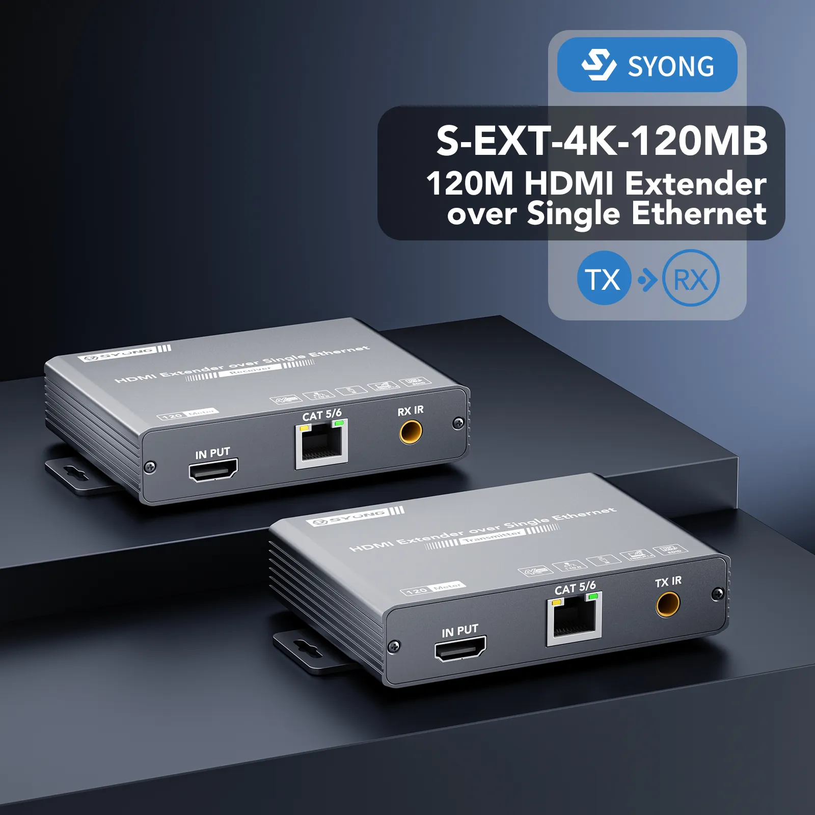 This integrated cable extender replaces the HDMI cable with a CAT5e or CAT6 cable (recommended). It can transmit HDMI1.4 4K@30Hz HDM1.3 1080P I for 120 meters,The purpose of the extender is to use low-cost wires. To achieve long-distance signal transmission.