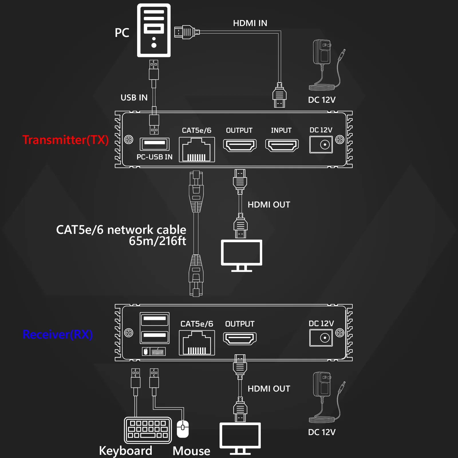 4K60HZ 65m/213ft HDMI KVM USB Extender support POC