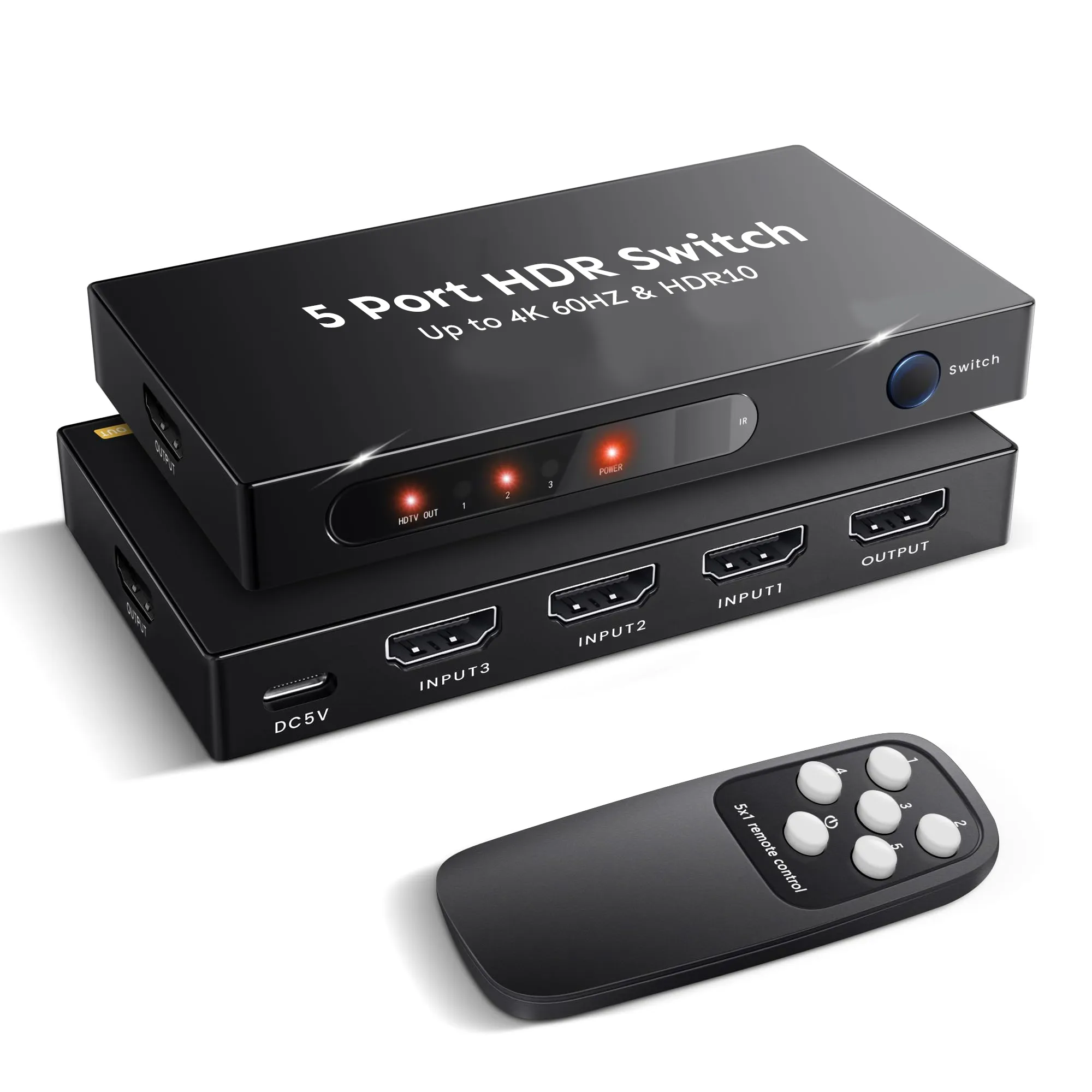 5 in 1 out 4k Ultra-thin HDMI switch with remote control, HDMI 2.0 and HDCP2.2, Dobly, HDR10+, 3D, 4K60HZ, Plastic shell