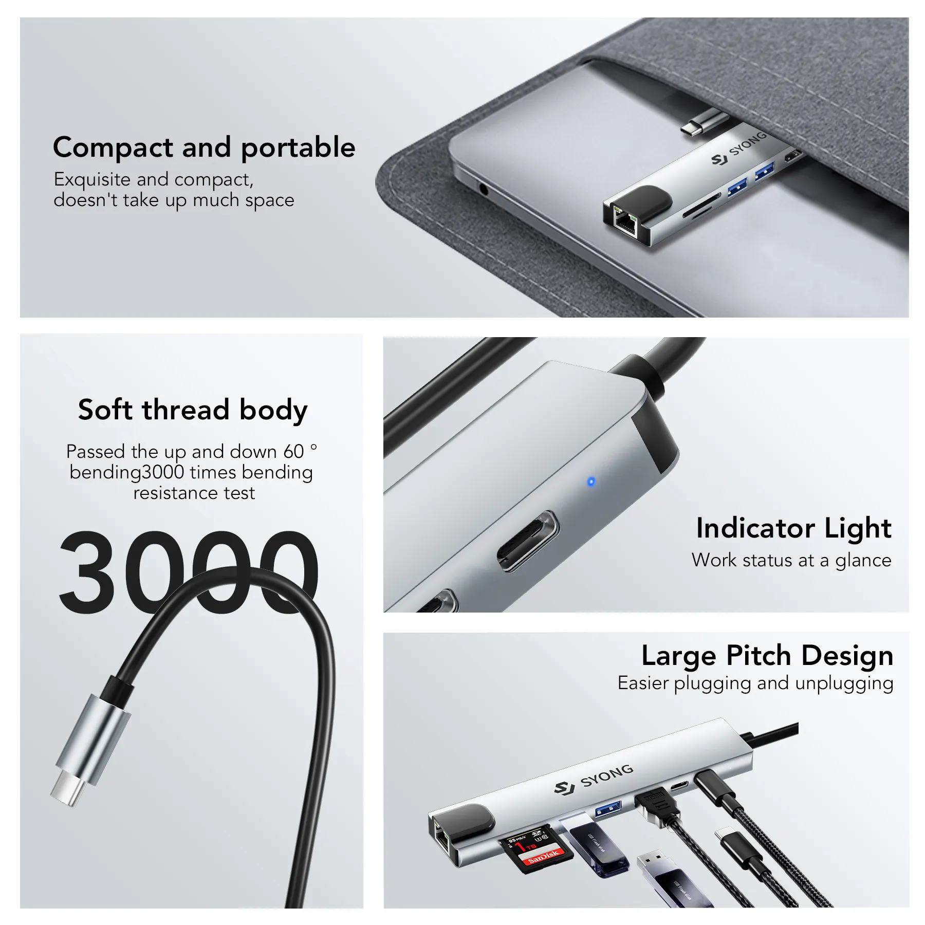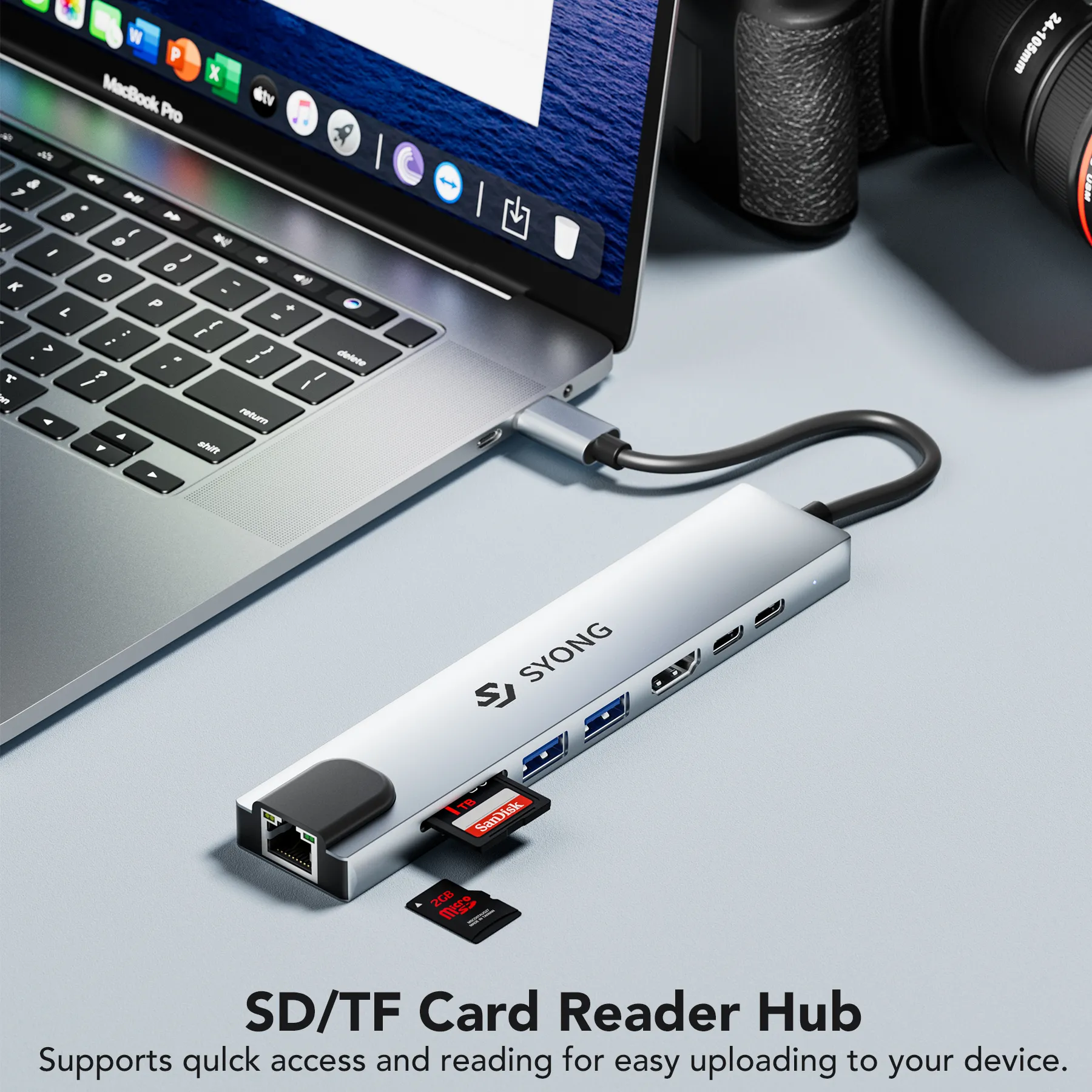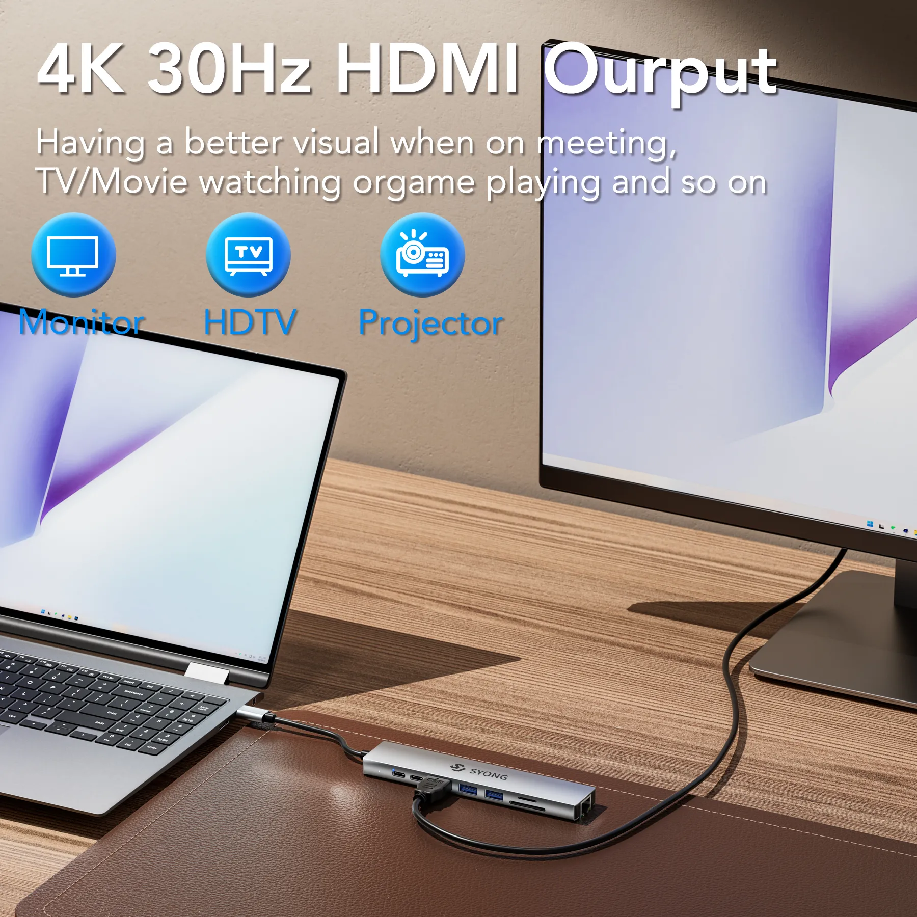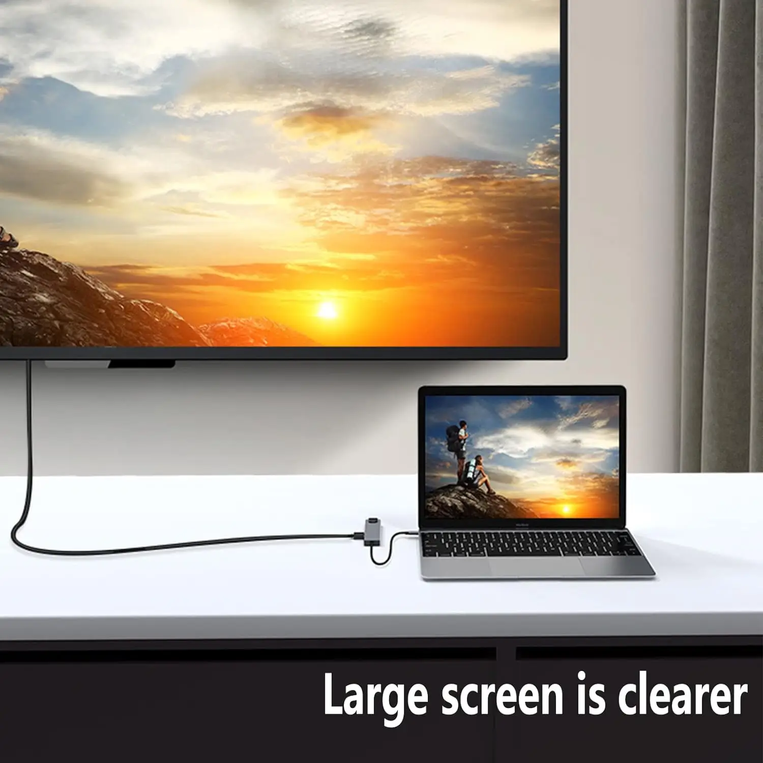 This USB C to HDMI hub equipped with USB3.0, USB 2.0, 4K@30 HDMI, PD100W, SD and TF Card Port. Ideal partner for laptop, computer, tablet and cellphone. Compatible with Macbook air, Macbook Pro, Mac HDMI Adapter, iMac, XPS, Chromebook, iPad Pro, Galaxy S21/S20/S10/S9/S8, Switch Dock and more.