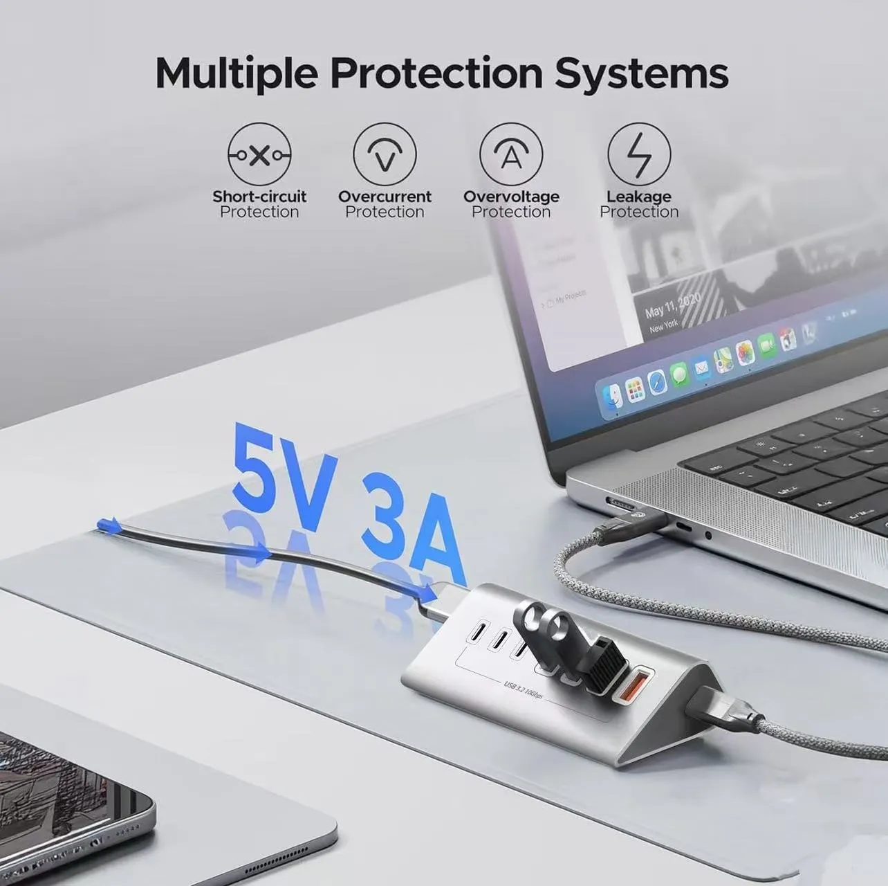 8-Port Expansion: Supports high-speed data transmission for multiple devices simultaneously.