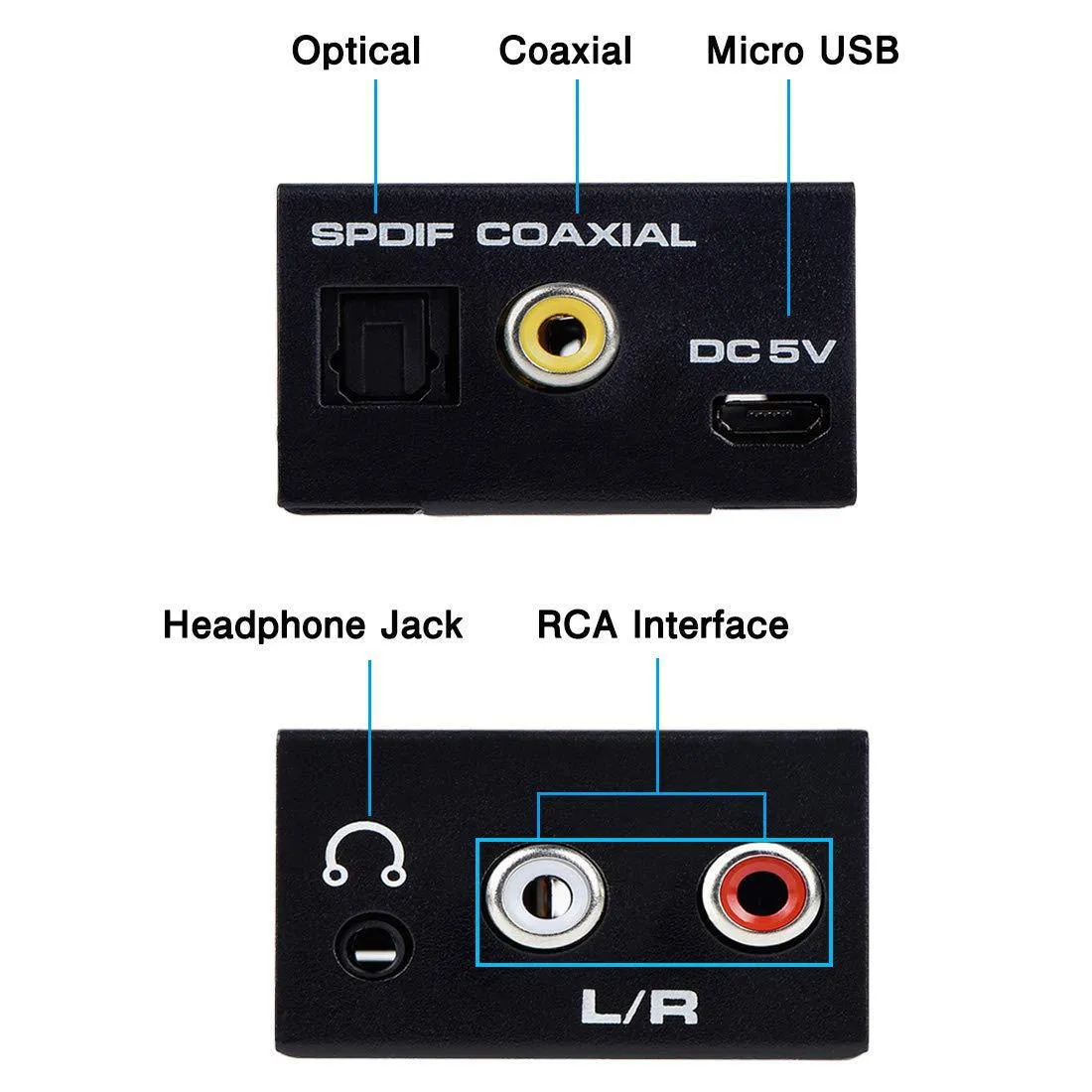 * Easy To Install: The converter is easy to use, just plug and it will automatically detect the audio signal to work immediately.Connect the Optical or Digital Coax output of HDTV, TV Box and other devices with this digital to analog audio converter, thenRCA L/R or 3.5mm Jack output on the other side with your headphone or stereo speaker.