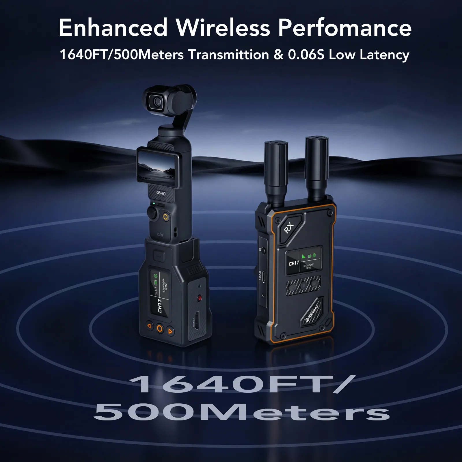 1640FT 500M Long Range 1080P 60Hz Low Latency Transmission Supports 1080P 60Hz HD wireless transmission up to 1640FT 500M in open environments with latency below 0.05 seconds ensuring smooth and stable video output