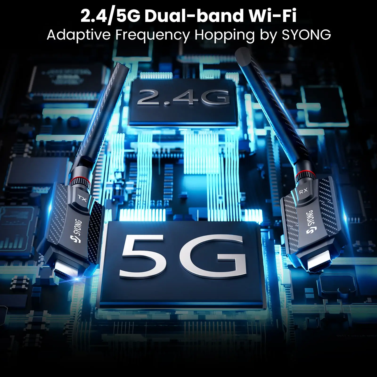 The transmission channel automatically matches between 2.4/5.8G frequency. Minimal latency of ≤O.06s.
