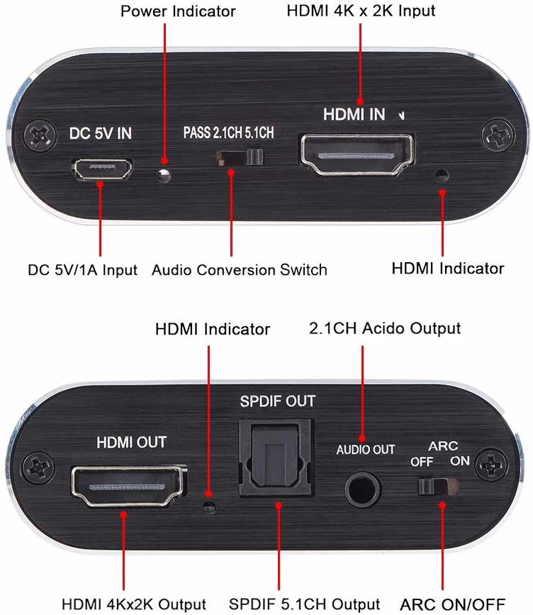 HDMI Audio Extractor: Support one HDMI input source to one HDMI output + optical toslink SPDIF and analog 3.5mm stereo audio output. (Tips: SPDIF and 3.5mm audio support output separately to soundbar, amplifier, headphone and other audio receiver without connecting TV / Monitor)