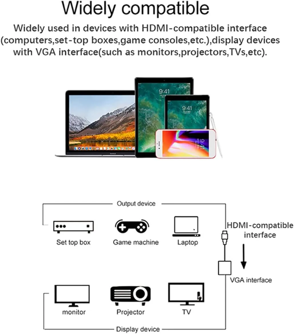 * SUPERIOR STABILITY: Built-in advanced IC chip converts HDMI digital signal to VGA analog signal; It is NOT a bi-directional converter and cannot transmit signals from VGA to HDMI
