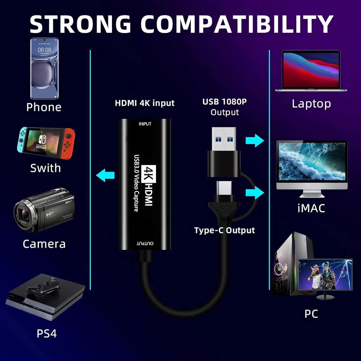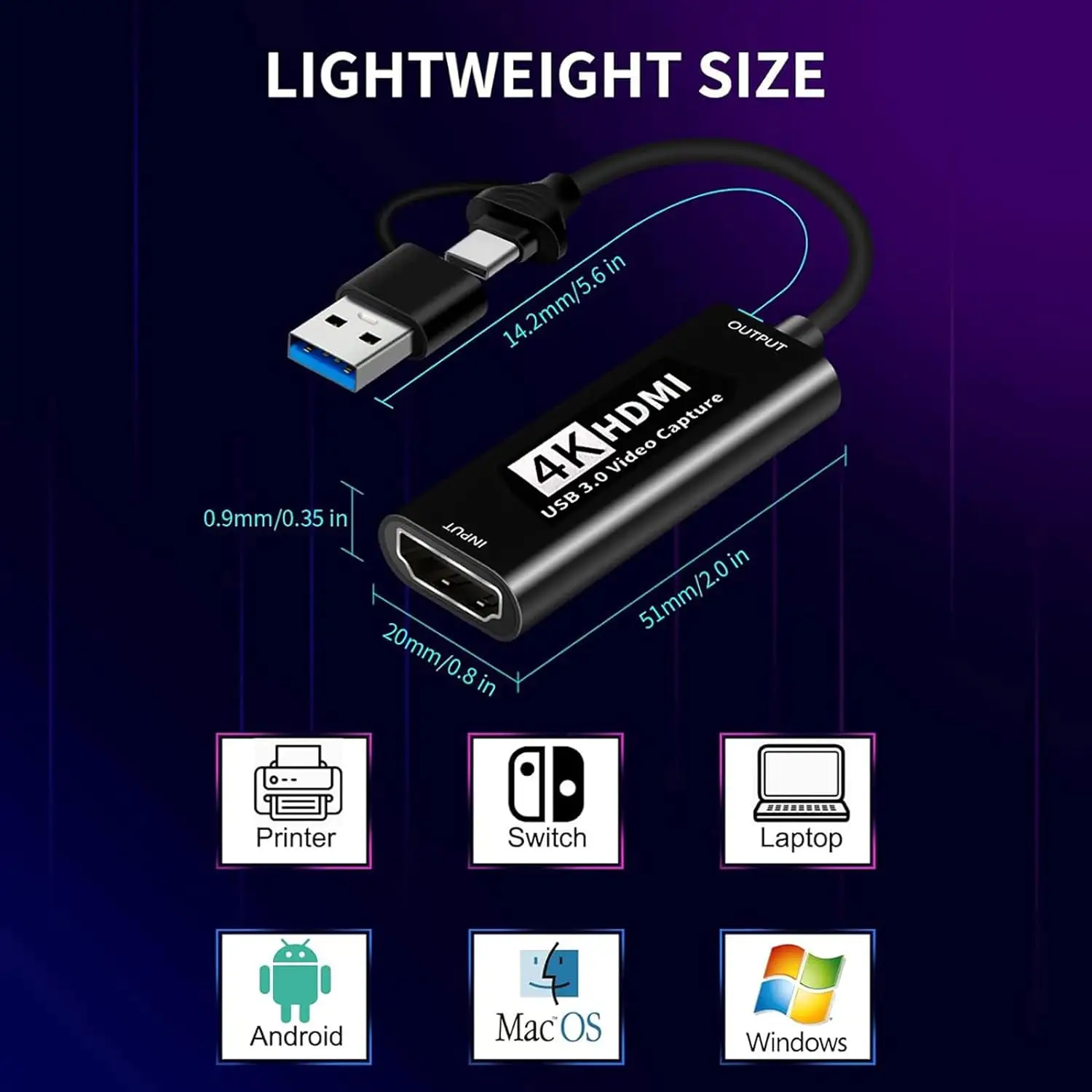 ⚡USB/Type-C 2-in-1 Interface & Plug and Play: Our Criello Video Capture Card has HDMI female input interface and two types of smooth output connections: USB and Type-C output interfaces, which fulfills your different interface needs. This latchless designed Capture Card does not require any extra drivers or external power supply, just plug and play for fluently fast capture. Small and lightweight Video Capture Adapter is convenient to carry, making it portable for outdoor recording.