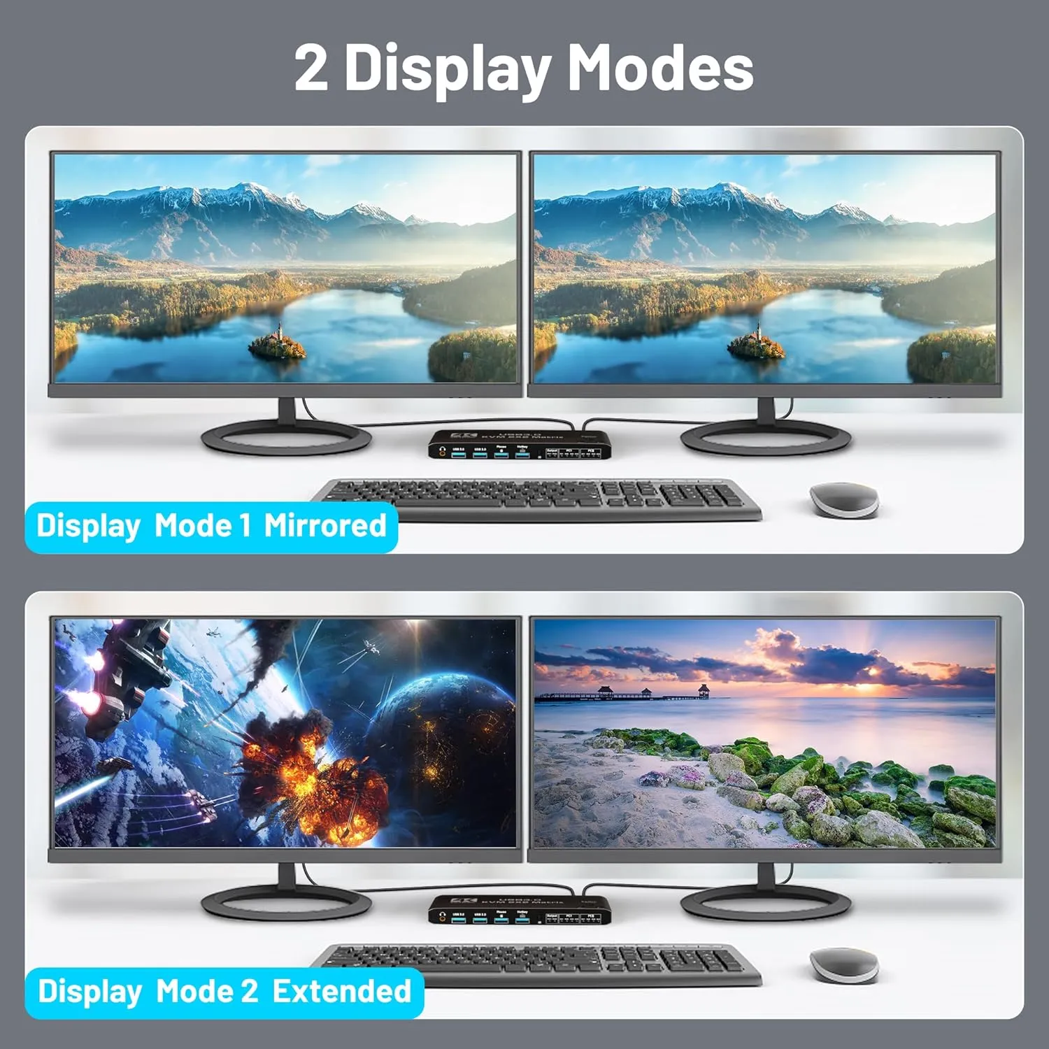 【2 Port KVM Switch HDMI for Dual Monitor 】USB and HDMI KVM switch allow a one-click swap control up to 2 computers or laptops with 1 set of USB keyboard, mouse, and share dual monitors for extended or copy display without constantly changing cables or setting up complicated Tethering software. Make your work and life easier and more efficient!(𝐍𝐨𝐭𝐞: 𝐊𝐞𝐲𝐛𝐨𝐚𝐫𝐝 𝐂𝐭𝐫𝐥+𝐒𝐡𝐢𝐟𝐭+𝐊: 𝐄𝐧𝐚𝐛𝐥𝐞/𝐃𝐢𝐬𝐚𝐛𝐥𝐞 𝐡𝐨𝐭𝐤𝐞𝐲 𝐟𝐮𝐧𝐜𝐭𝐢𝐨𝐧)