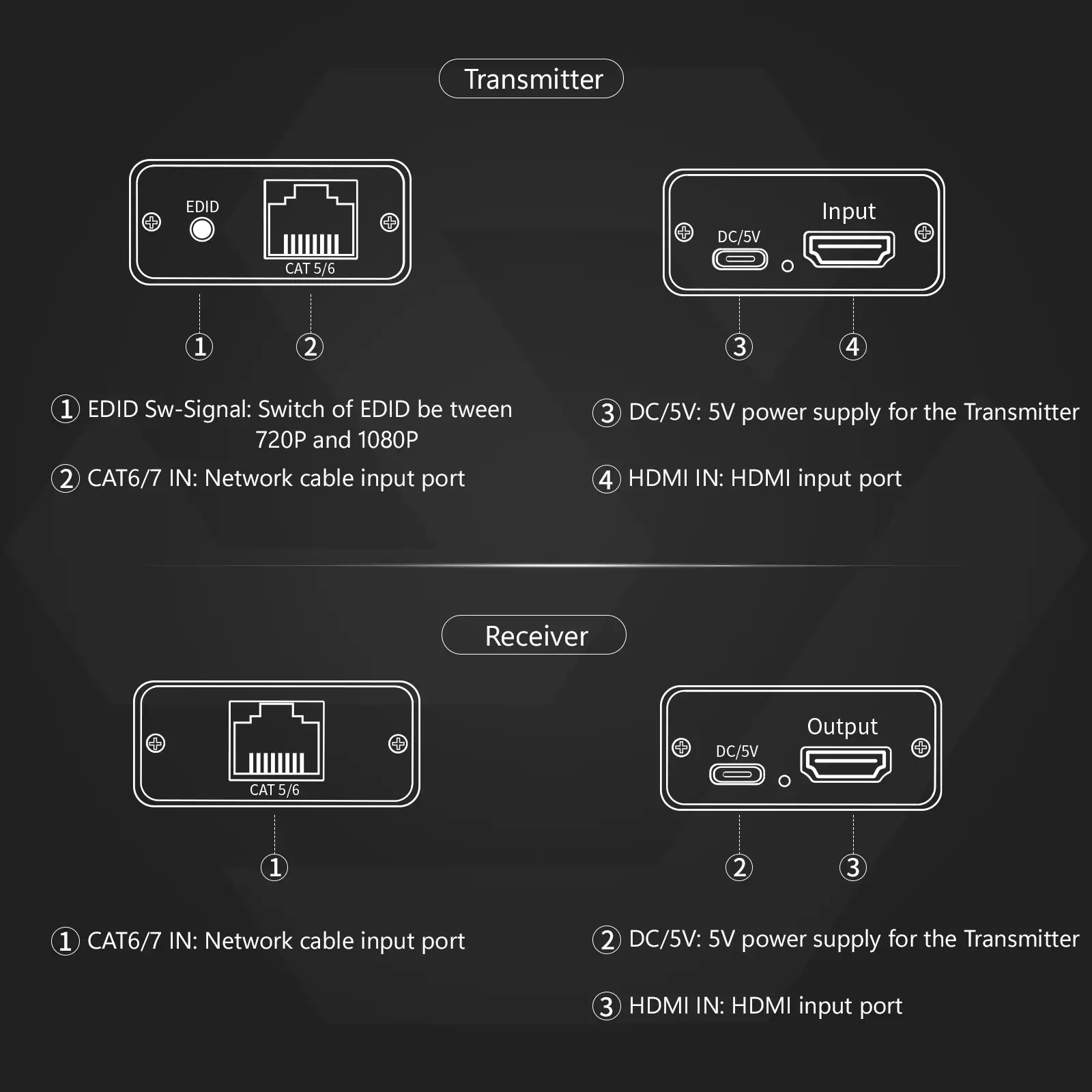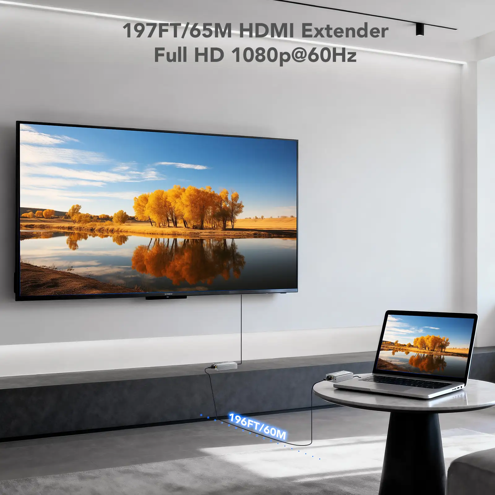 - Feature: Point-to-Point, by single CAT5e/6 Cable, up to 196ft, new model, 60M: 1080P