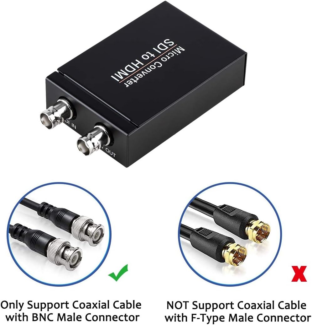 SDI to HDMI Converter: 3G-SDI/ HD-SDI/ SD-SDI to HDMI Converter, auto format detection 3G-SDI, SD-SDI and HD-SDI input signals. Please Note: this SDI to HDMI Converter only supports SDI signal convert to HDMI signal, not support RF,CVBS,AHD,TVI,CVI etc BNC signal.