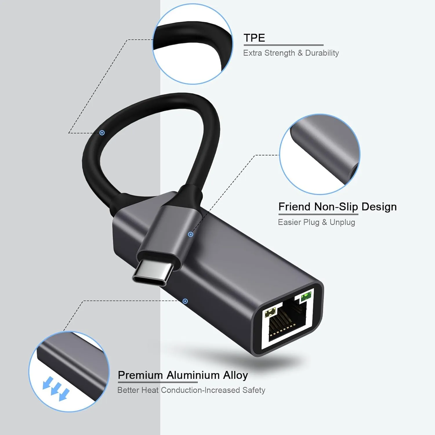 * Portable USB C Ethernet - Compact and lightweight. This usb c network adapter is made from premium TPE material that withstands at least 10000+ bends, ensuring durability and tangle-free use. Ideal for on-the-go scenarios such as business travel, education, and entertainment.
