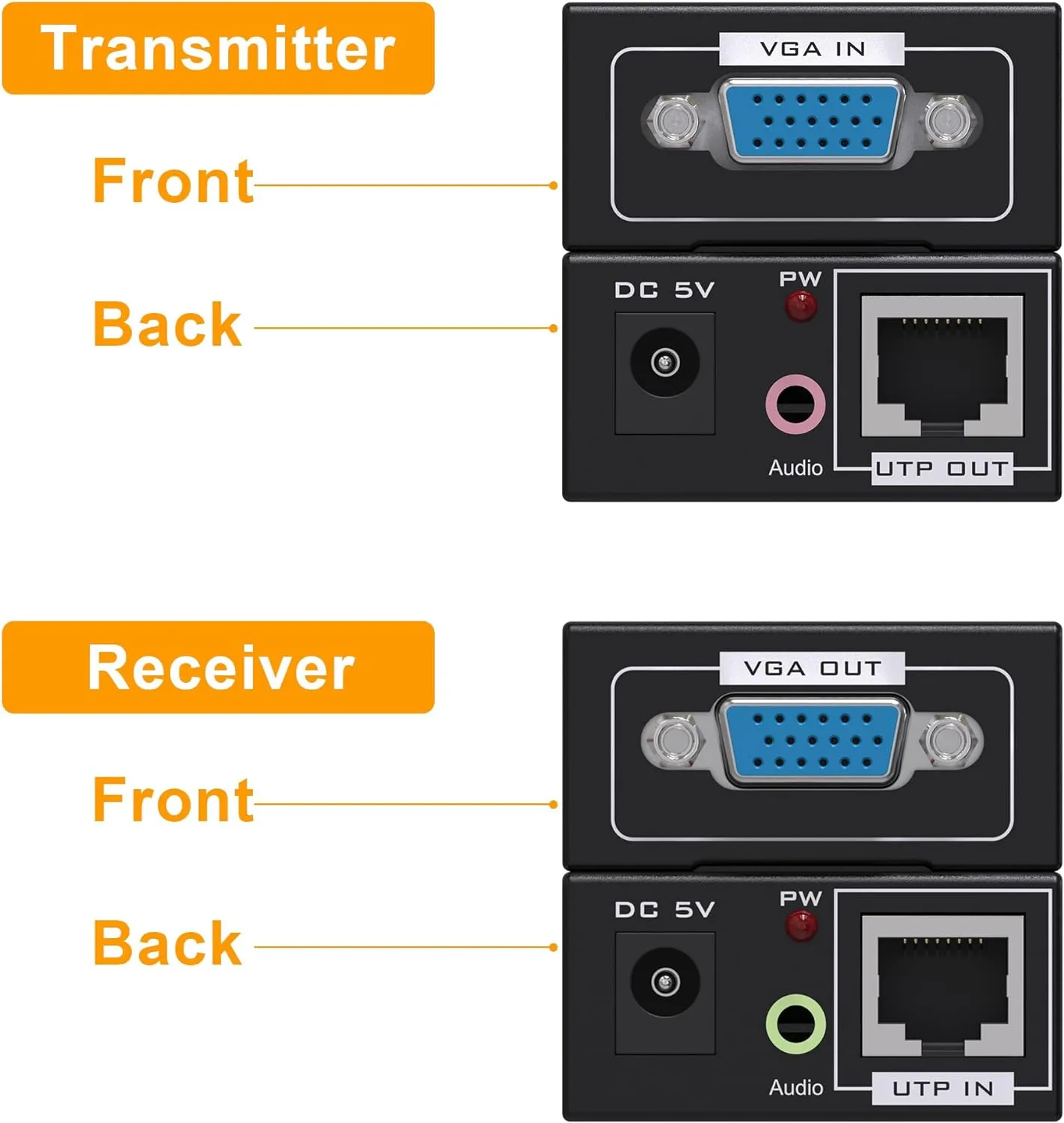 100M VGA audio and video extender, by single CAT5e/6 Cable, up to 328ft, iron shell