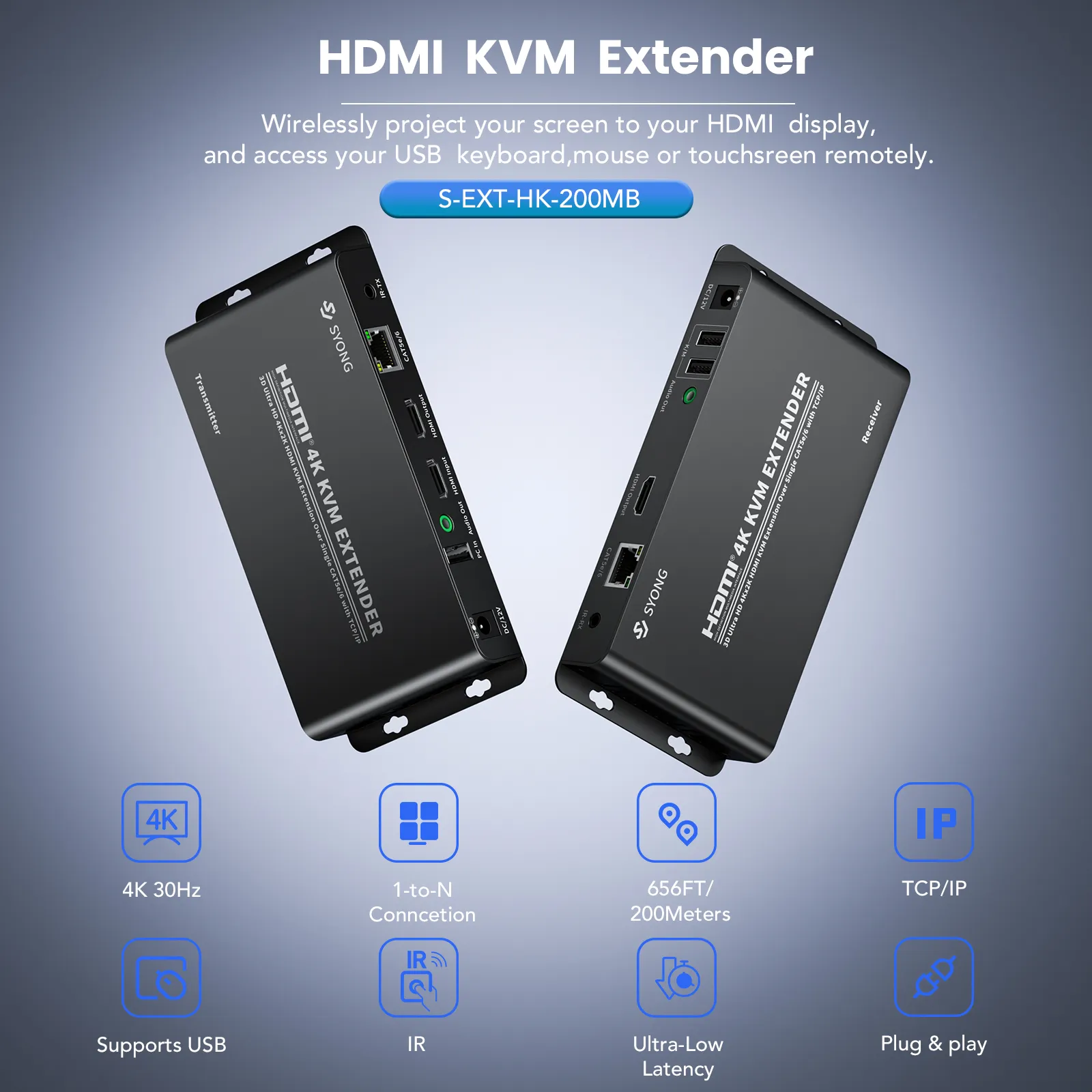 True 4K 200M HDMI KVM Over Cat5e/6 Extenders support N to N