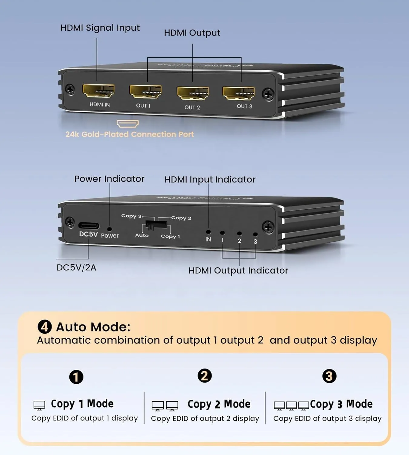 1 in 3 out 8k HDMI splitter,
