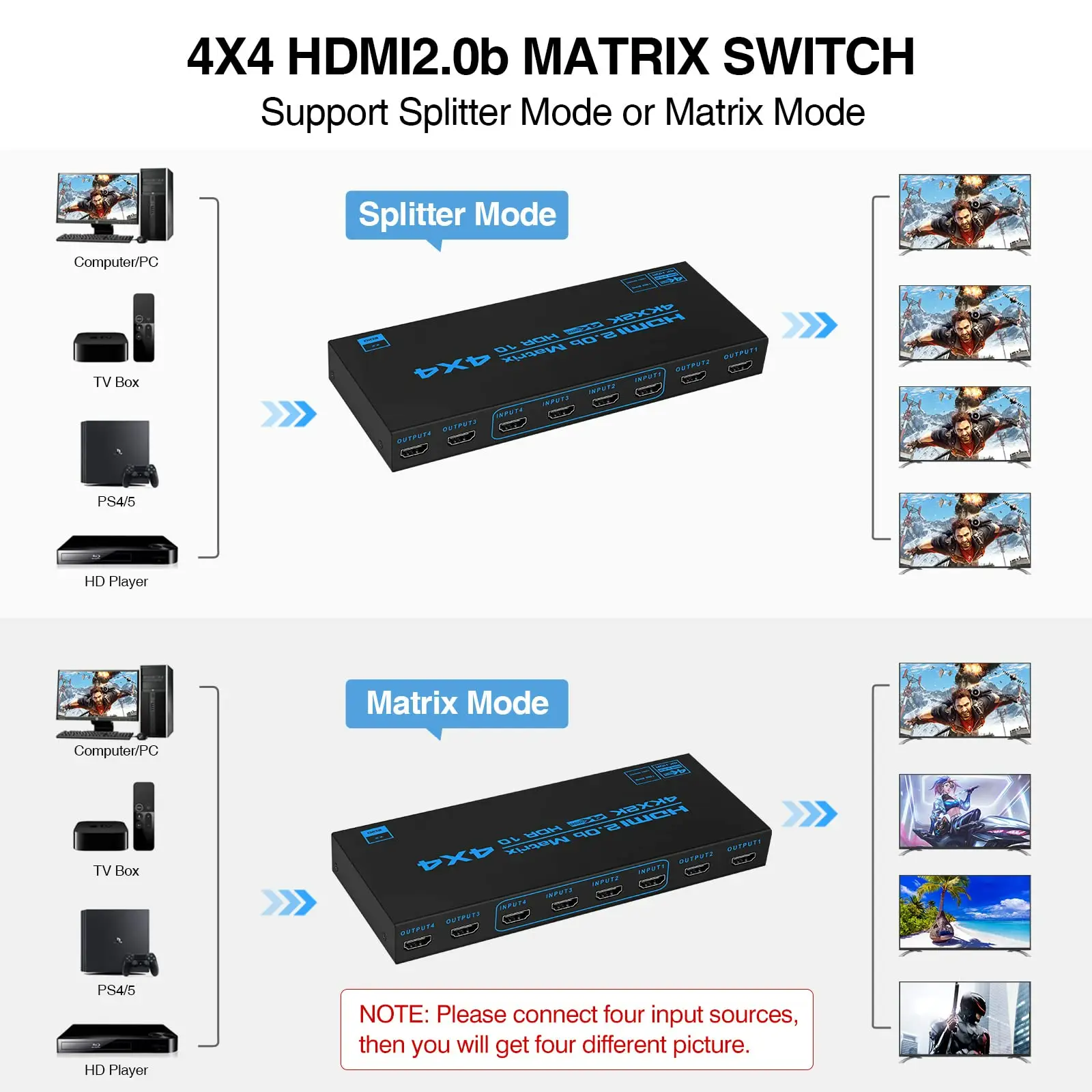 4K60Hz HDMI2.0b Matrix 4x2 with Audio Extractor